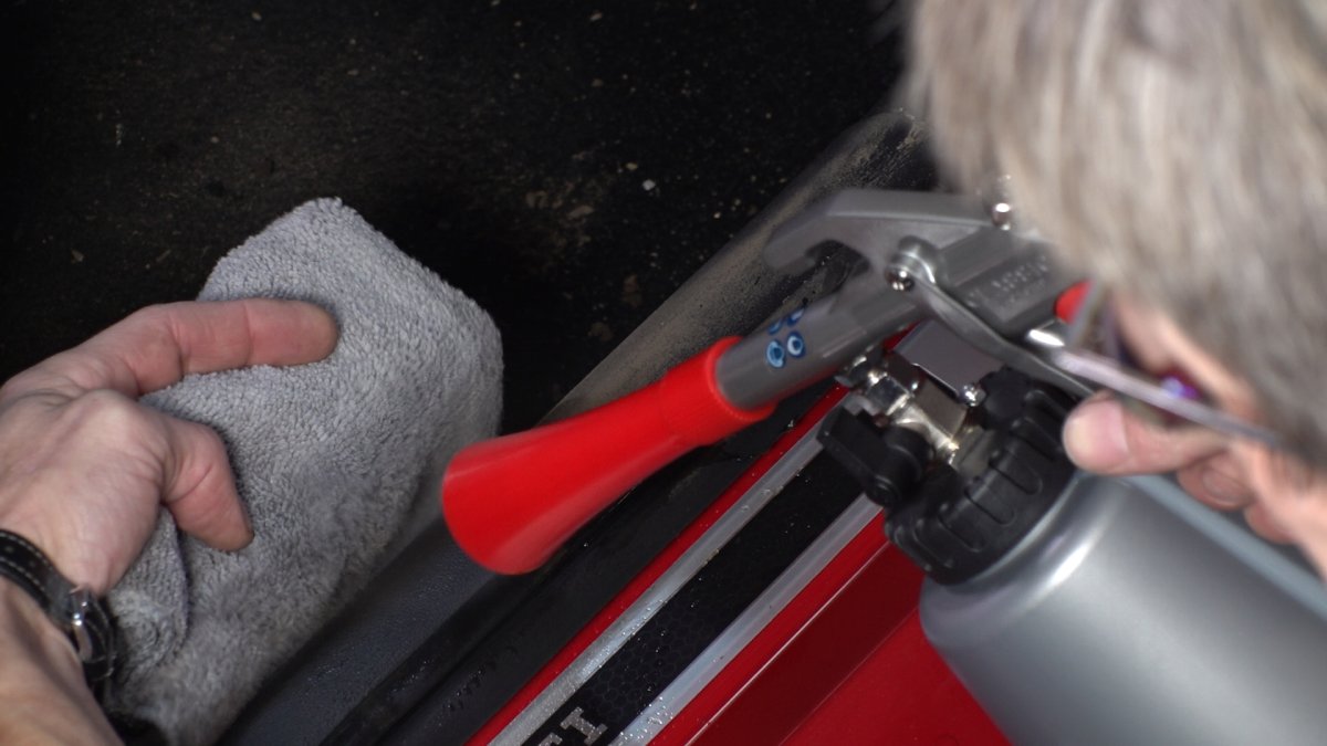 Die Tornador® CLASSIC Z-010RS ist eine druckluftbetriebene Saugbecher-Pistole, die sowohl Luft als auch Reinigungsflüssigkeit extrem fein zerstäubt und unter hohem Druck rotierend verwirbelt. Einem geothermischen Tornado ähnlich, entsteht eine Art Rotationsfräse, die mit großer Kraft Schmutzpartikel aus der Oberfläche löst. Ideal für die „2-Minuten-Aufbereitung“ während des Kundenservices: Türablagefach, Armaturenbrett und Schaltmanschette: Ihr Kunde wird staunen!