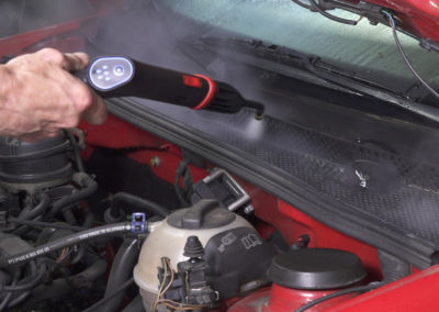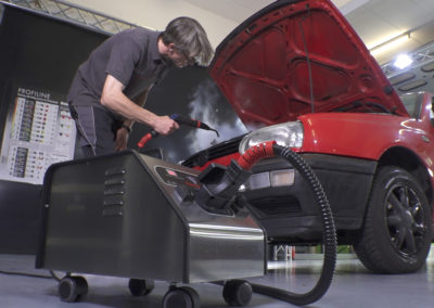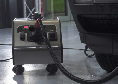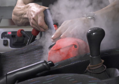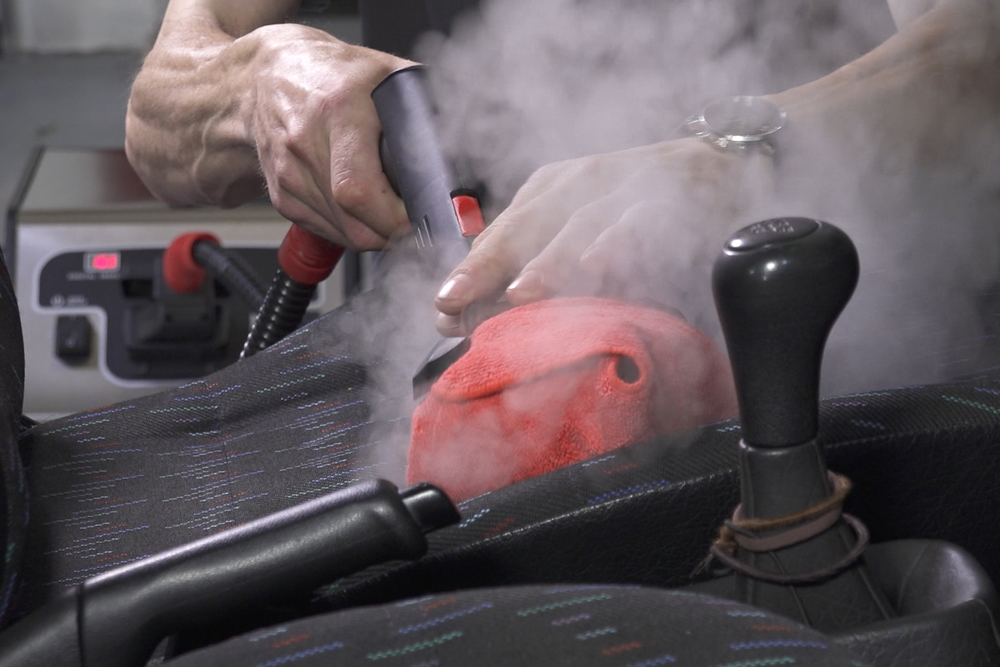 Strong steam cleaner with hot water function. The strongly heated steam (starting at 140° C) loosens the dirt ideally and lastingly kills germs and bacteria. Hot steam evaporates quickly, only brings little moisture in to the material, and minimizes the return time to the customer. Ideal for cleaning of the passenger- and engine compartment.