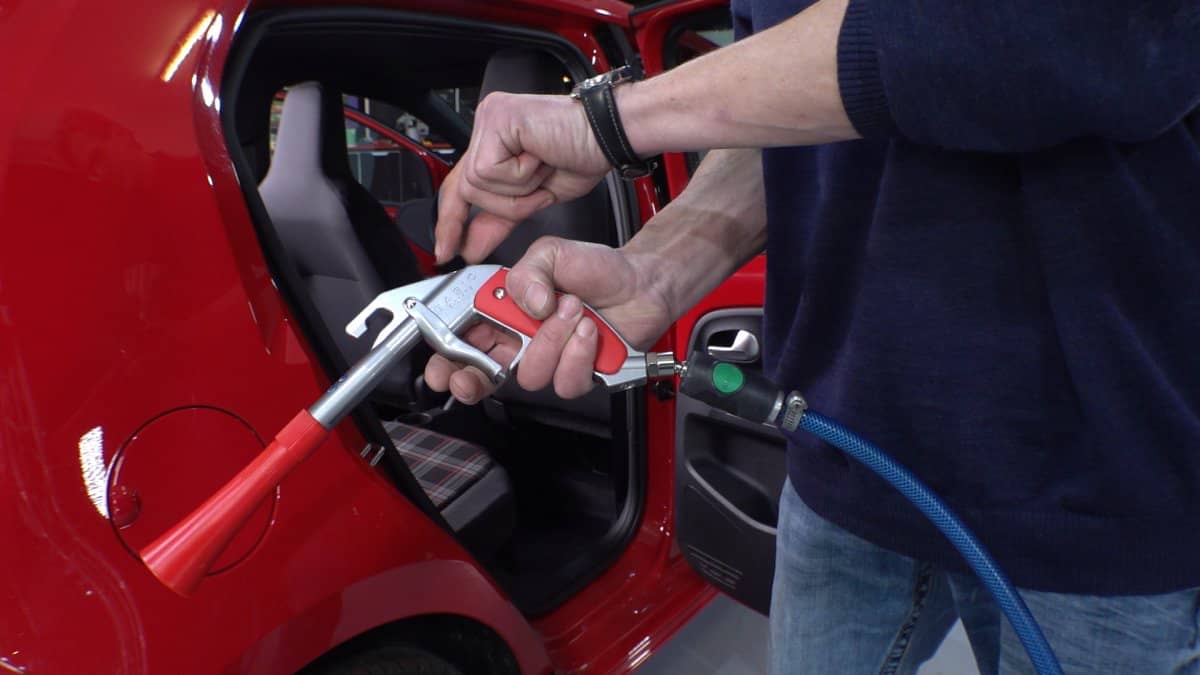 Wanneer de conventionele vloeistofcontainer het moeilijk maakt om toegang te krijgen tot krappe gebieden, is de Tornador® BASIC Z-014RS bijzonder succesvol gebleken: onder de stoelen, in de motorruimte, op de radiatorgrill, in de handvatschalen, onder de vuldop of ook met alle elektrische componenten reinigt en droogt de Tornador® BASIC Z-014RS nauwkeurig. De ingebouwde draaibare luchtinlaat maken het gebruik en de hantering nog eenvoudiger.